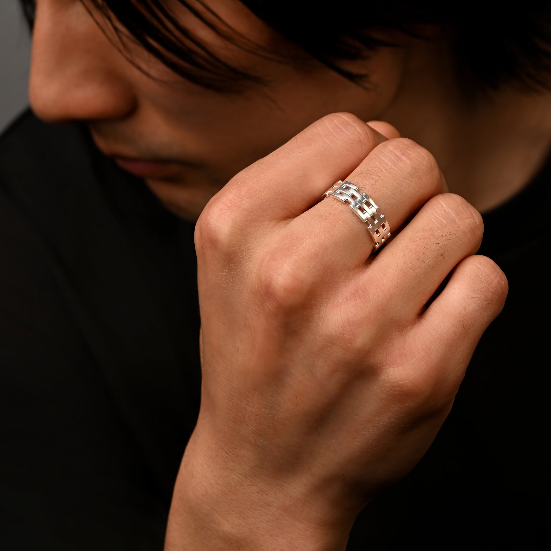 Sterling silver solid chain ring - 6mm wide